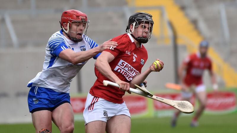 Cork's Darragh Fitzgibbon is tackled by Waterford's Darragh Lyons during the Allianz Division 1A NHL game at Páirc Uí Chaoimh. Picture: Eddie O'Hare