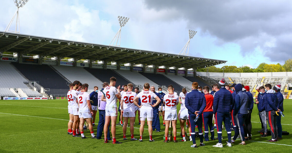 Cork manager Kieran Kingston speaks to the panel after Sunday's win over Westmeath at Páirc Uí Chaoimh. Picture: INPHO/Ken Sutton