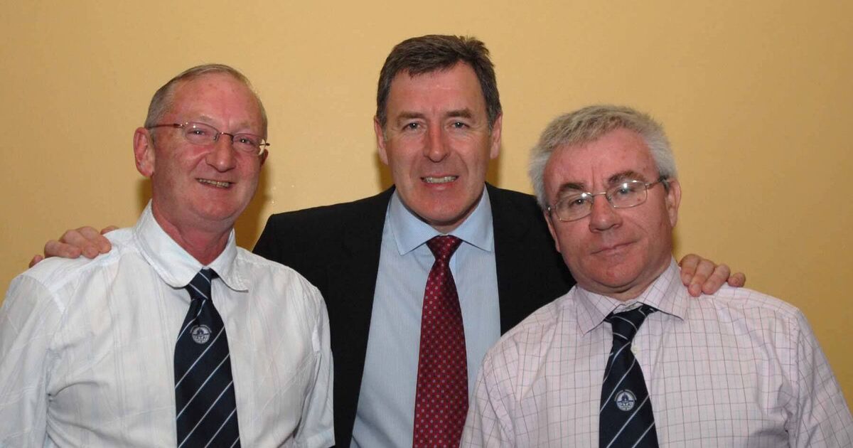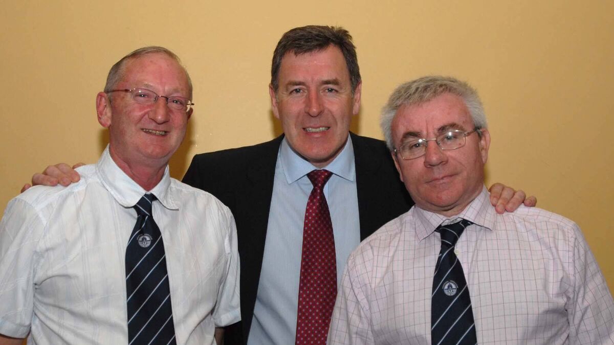 Pat Quinn and Noel Condon with Packie Bonner at the Crosshaven AFC dinner in the Carrigaline Court Hotel recently. Picture: Howard Crowdy