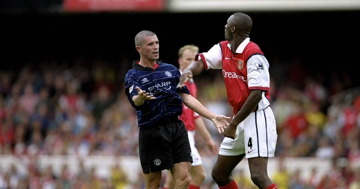 ICONIC: Roy Keane of Manchester United clashes with Patrick Vieira of Arsenal in 1999. Picture: Clive Brunskill /Allsport