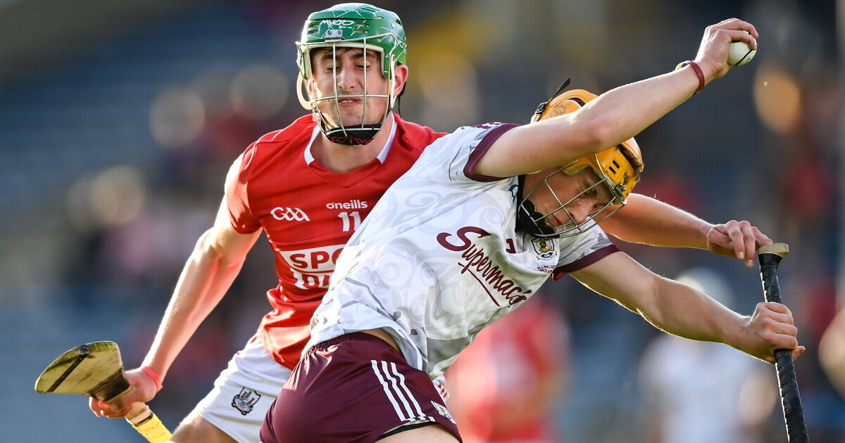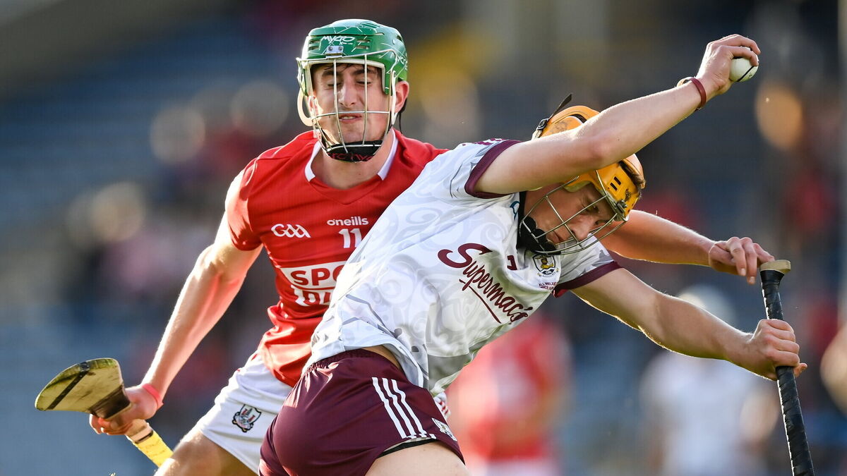 Nathan Gill of Galway in action against Ben Nyhan of Cork. Picture: Stephen McCarthy/Sportsfile