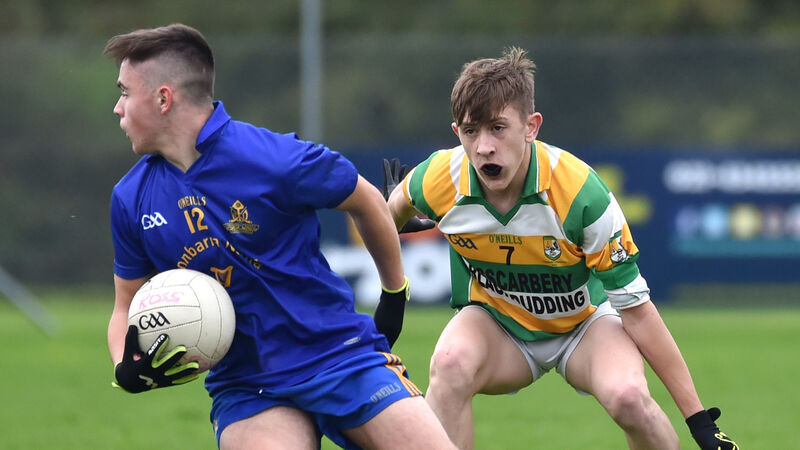 Darragh Callanan, St Finbarr’s, looking to break past David O’Regan, Carbery Rangers, during the U16 final. Picture: Dan Linehan