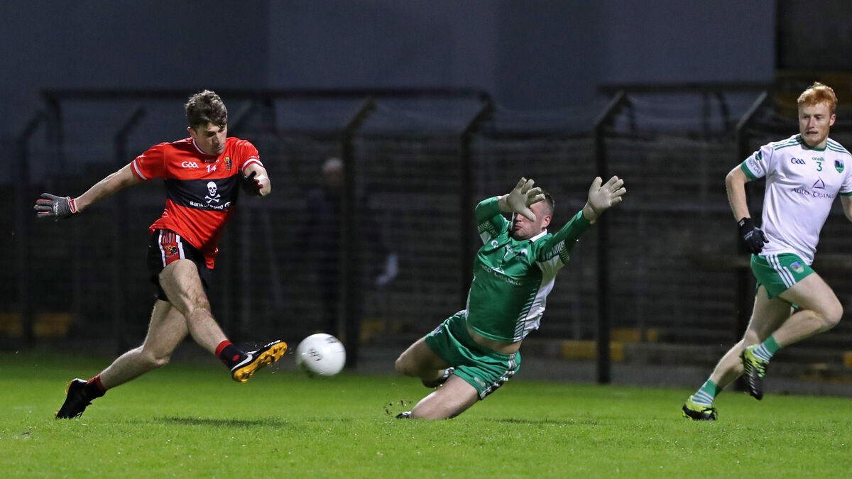 Muskerry got off to a perfect start when the former Cork senior Fintan Goold got in behind to fist the ball over from an acute angle. The UCC rearguard looked shaky in the opening exchanges and they were further punished when a ball was picked up inside the square that saw Chris Óg Jones blast the penalty to the corner of the net.