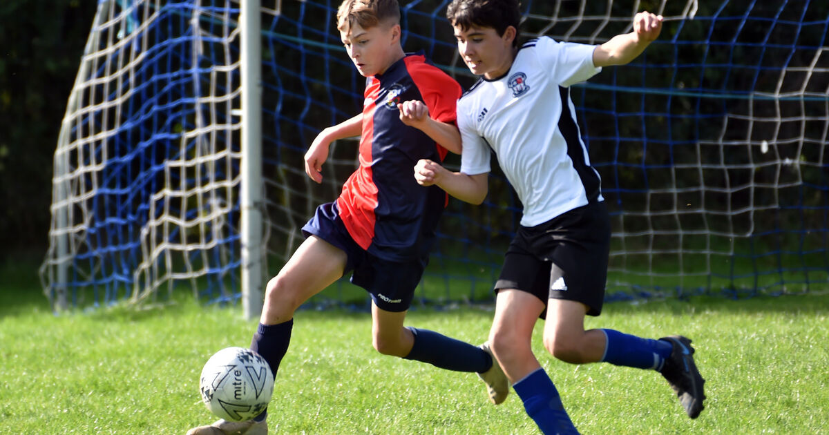 Lakewood Athletic's Dylan Keane and Wilton United's Jack Ryan tussle for the ball during the U14 National Cup clash at Pat Bowdren Park. Picture: Eddie O'Hare