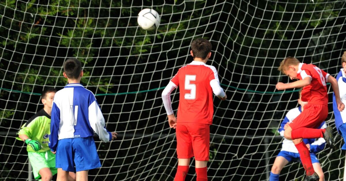 Mallow Town's Adrian Jedrys with a great header which went just wide against Corinthian Boys in the Cork Schoolboys League Roy Keane Premier League game at Castletreasure. Picture: Denis Minihane.