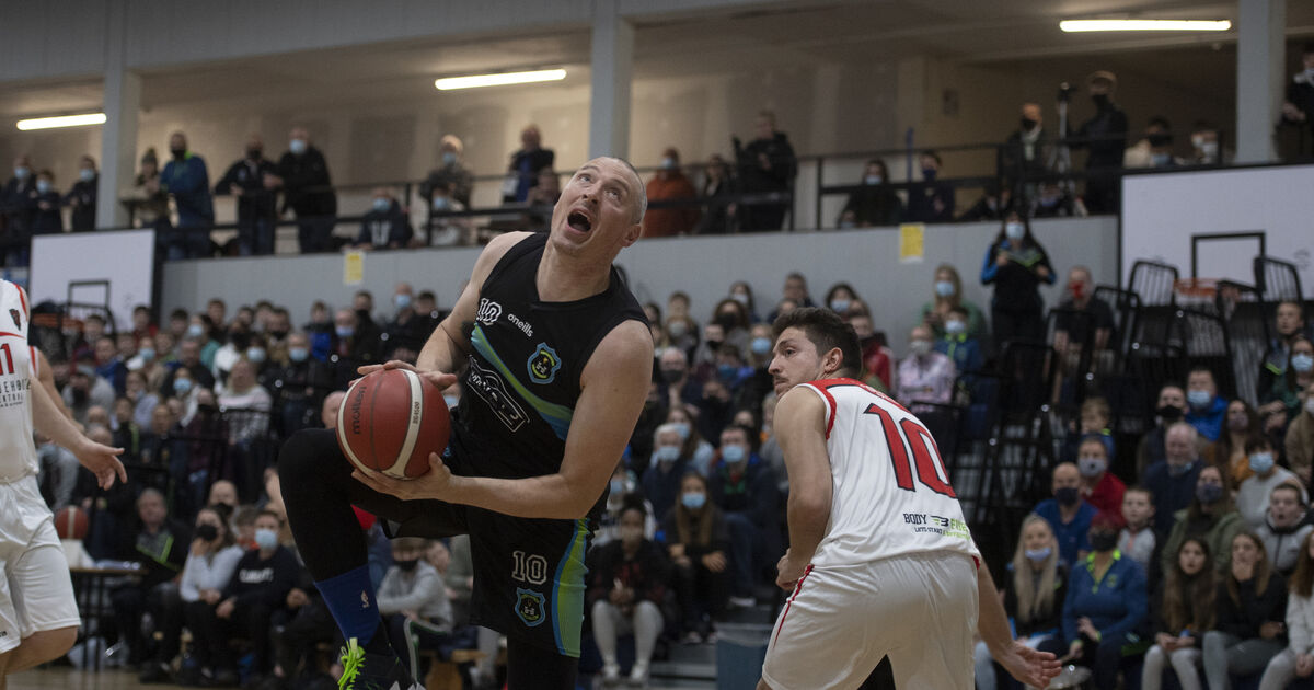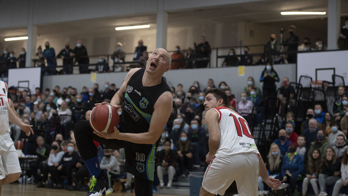 Kieran Donaghy, seen here for Tralee Warriors and Pau Cami Galera of Tradehouse Central Ballincollig, is still an impactful player on the court and in GAA. Picture: Domnick Walsh