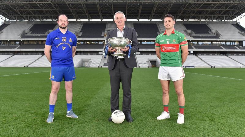 Harry Canning, general manager Bon Secours Cork, with players this weekend's Bon Secours Cork PSFC final at Pairc Ui Chaoimh, John Kerins, St Finbarrs and Eoghan Deasy, Clonakilty.