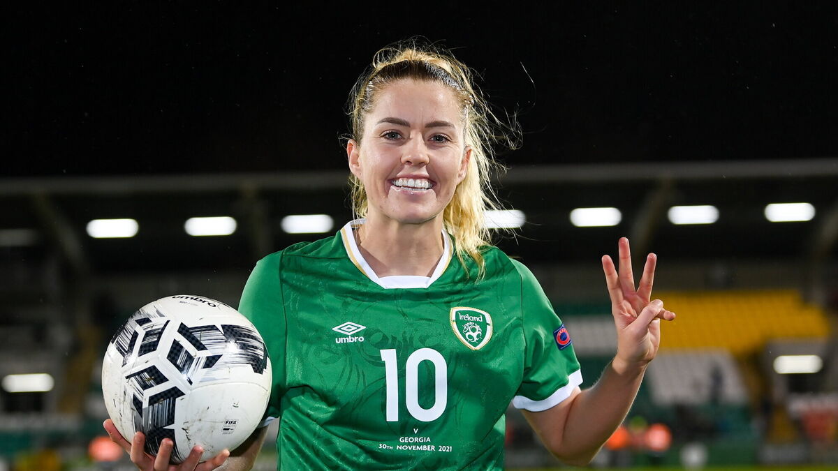 Denise O'Sullivan with the match ball after scoring a hat-trick against Georgia at Tallaght Stadium. Picture: Stephen McCarthy/Sportsfile