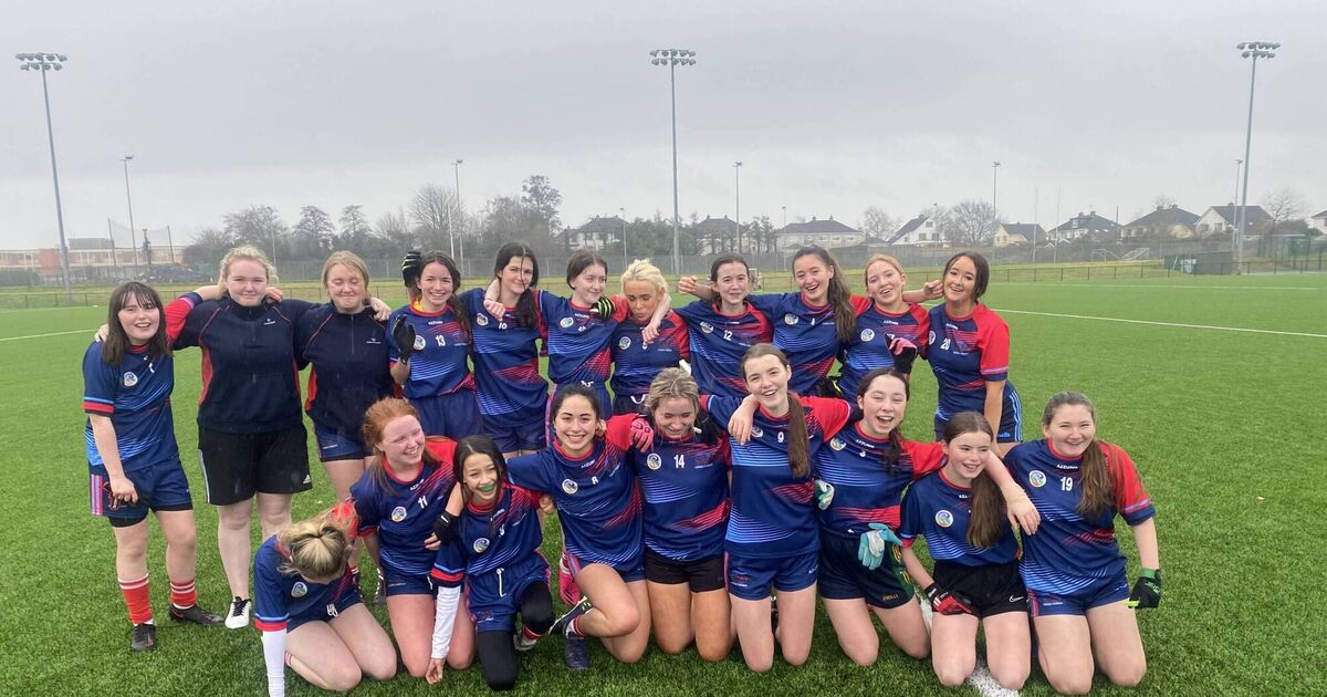 Coláiste Daibhéid celebrate a ladies football victory this season.