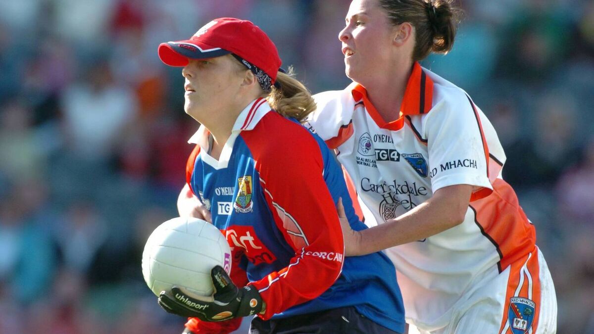 Safehands: Former Cork goalkeeper Elaine Harte gathers the ball from Armagh's Shauna O'Hagan at Croke Park. Picture: Eddie O'Hare