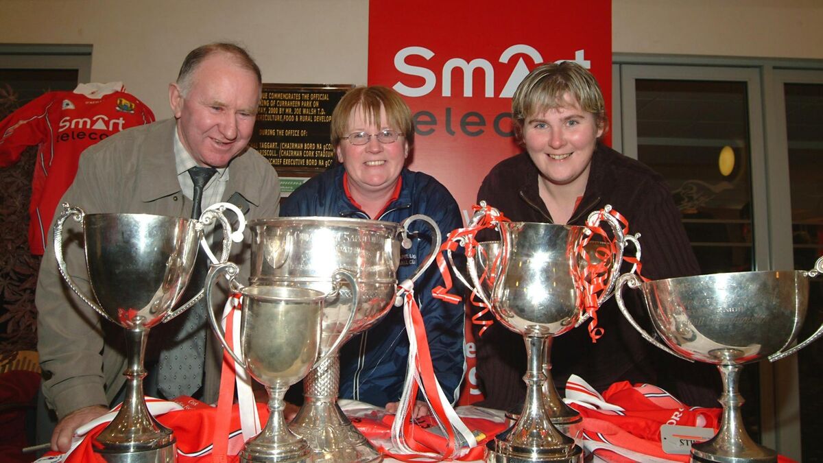 Frankie Honohan, Mary Collins and Sharon O'Keeffe with all the trophies Cork won in 2005. Picture: Larry Cummins.