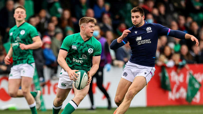 Ireland's Patrick Campbell comes up against Ross McKnight of Scotland last weekend. Picture: INPHO/Ben Brady