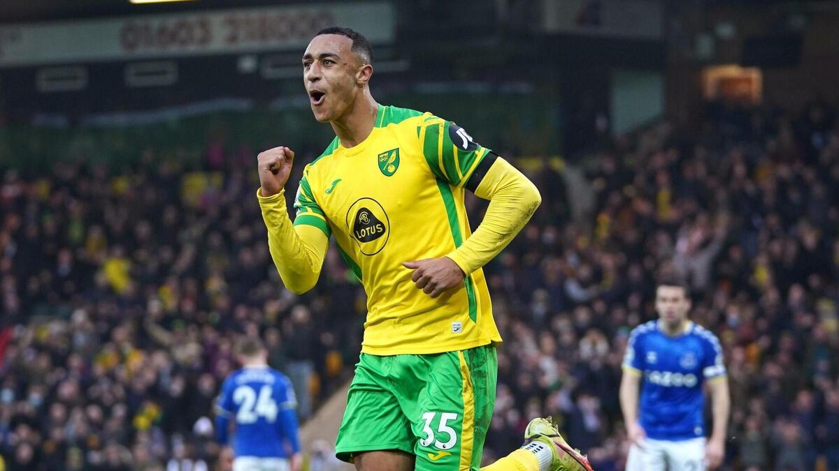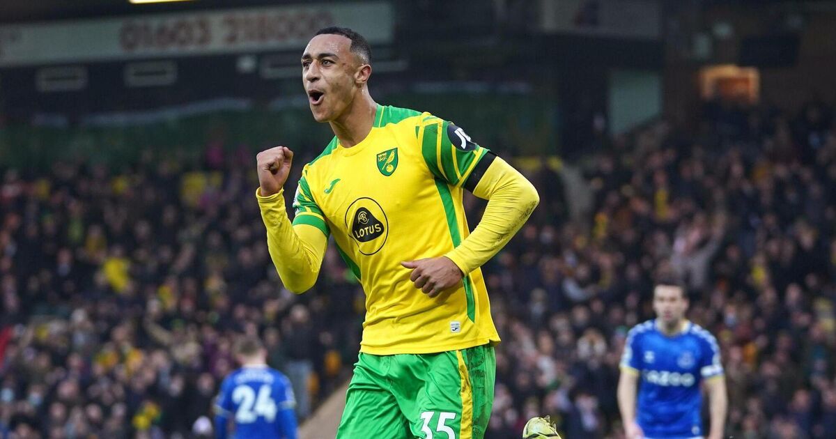 Norwich City’s Adam Idah celebrates and own goal by Everton’s Michael Keane during the Premier League match at Carrow Road, Norwich..