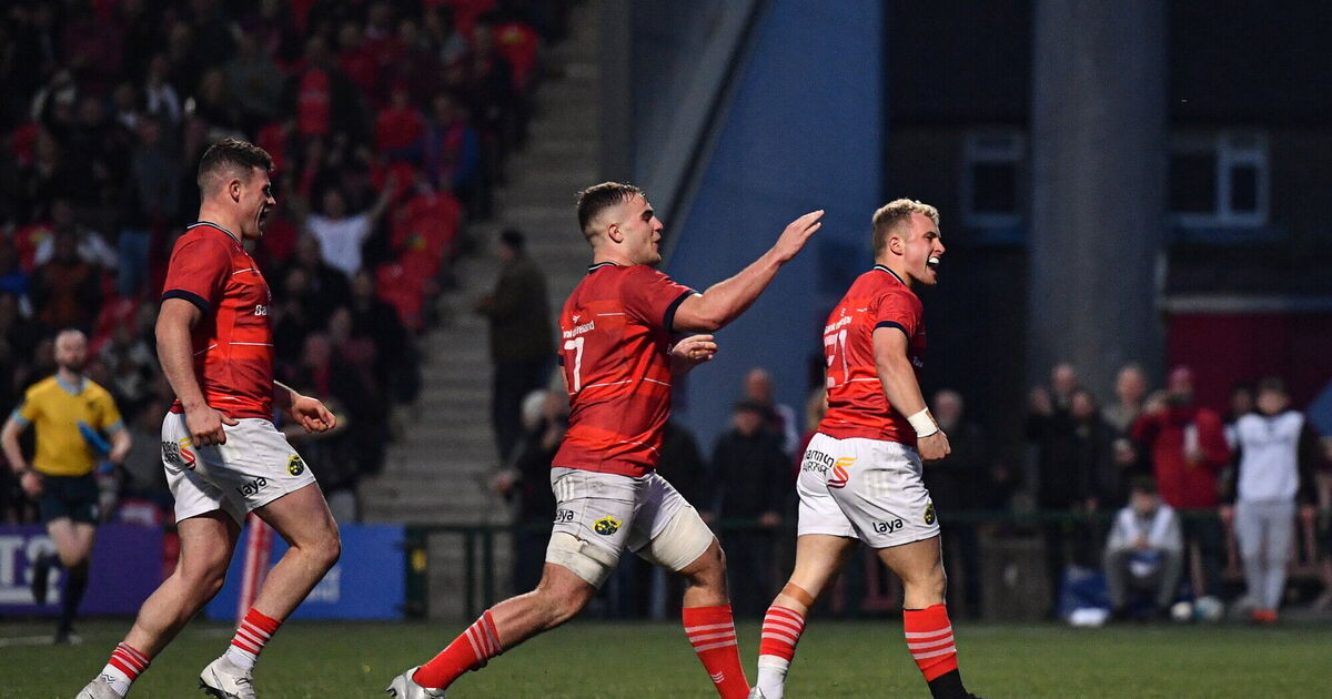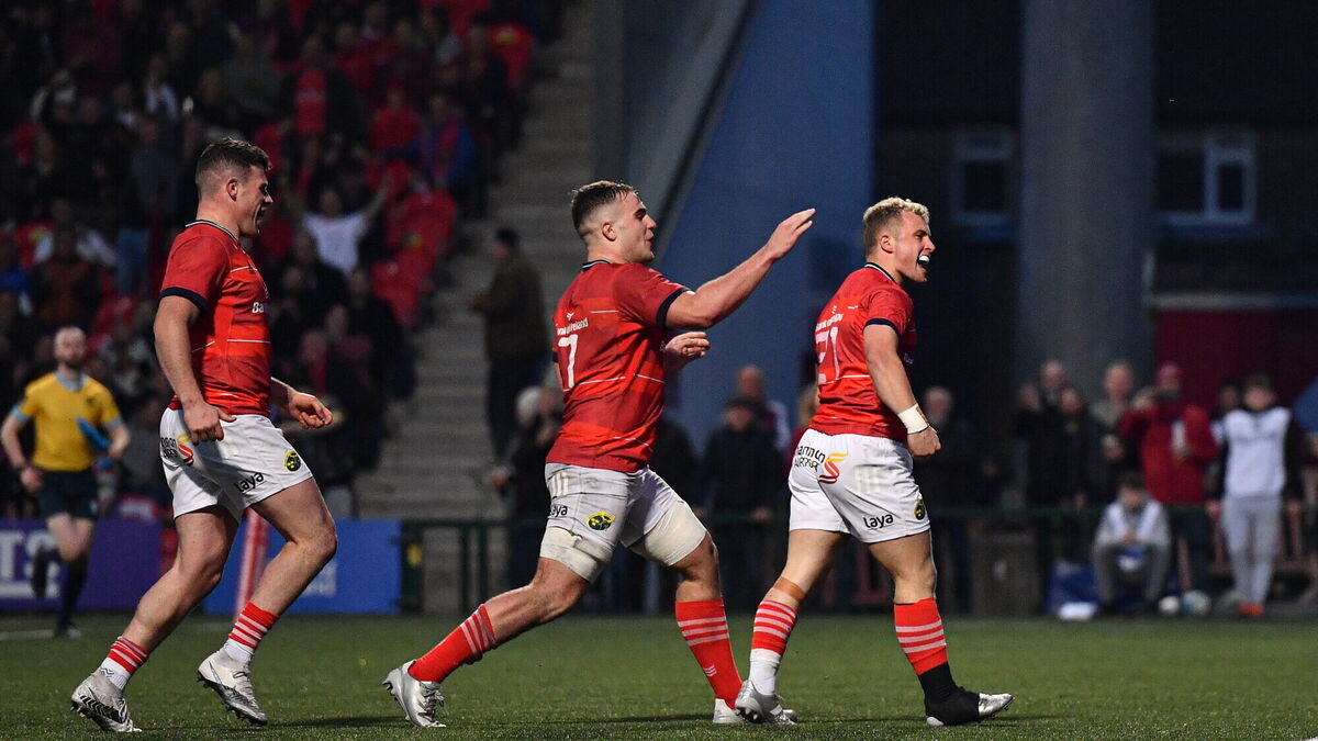 Ben Healy notched a 19th-minute penalty, after a wonderful ruck clear-out by Thomas Ahern had won the opportunity, and Munster took the lead for the first time in the 26th minute when Haley crossed for a brilliant second, in a try that he bookended with two sparkling slaloming runs.