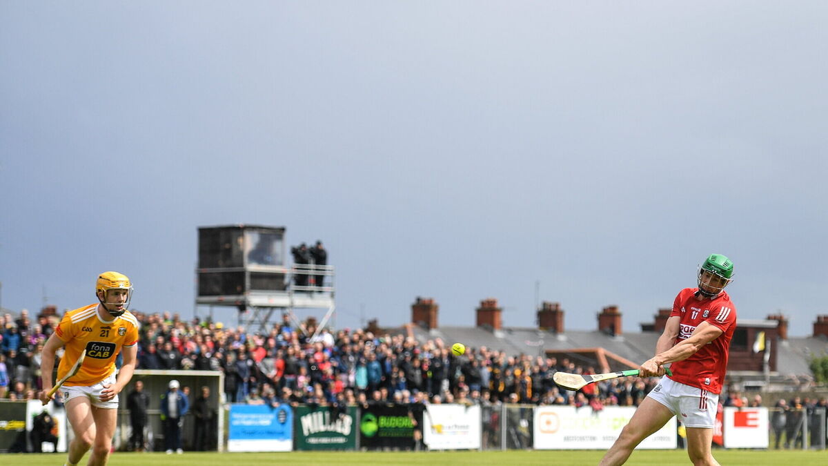 While Sean Elliott had Antrim off the mark after a minute, Cork looked to have settled when they struck for a fourth-minute goal. Shane Kingston and Tim O’Mahony combined to give Alan Connolly a chance and, though he lost possession as Antrim goalkeeper Ryan Elliott came off his line, Darragh Fitzgibbon was on hand to send the loose ball to the net.