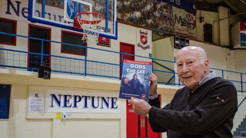 Jim O'Donoghue pictured with his book 'Gods by the Lee - My Basketball Memories' in Neptune Stadium recently. Picture: Howard Crowdy