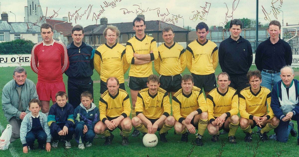 The final at Turner’s Cross on Sunday, May 3 was a tense affair and was decided by a last-minute winner from sub Brian Murray. Only on the pitch a number of minutes after replacing injured skipper Jim Courtney who had received a nasty knee injury, Murray bravely launched himself at a cross from Don Bevan to head past the out-stretched fingers of Paul Morgan.