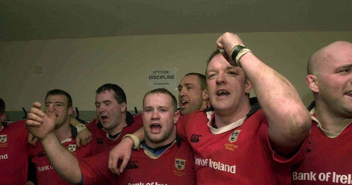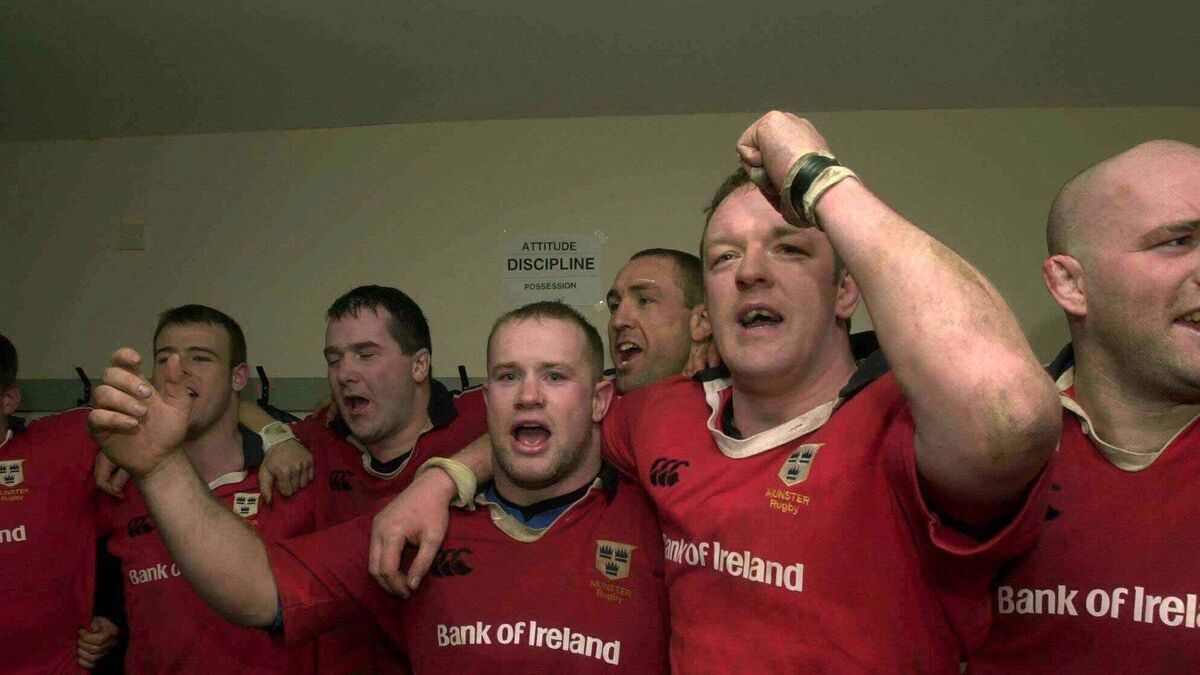Munster players Frankie Sheahan and Mick Galwey celebrate following the Heineken Cup Pool 4 Round 5 match between Newport in 2001. Picture: Matt Browne/Sportsfile