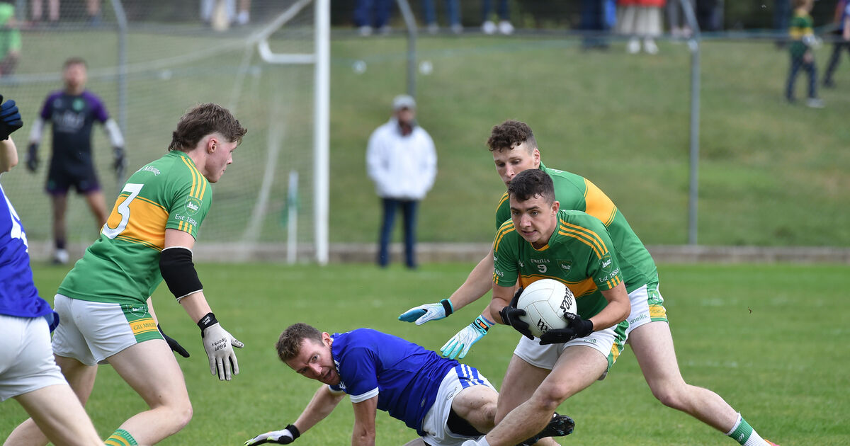 Lawerence Aisling, Kilmurry, coming away with the ball after a clash with Declan Ambrose, Aghinagh. Picture: Dan Linehan