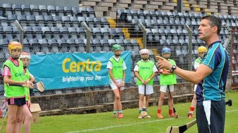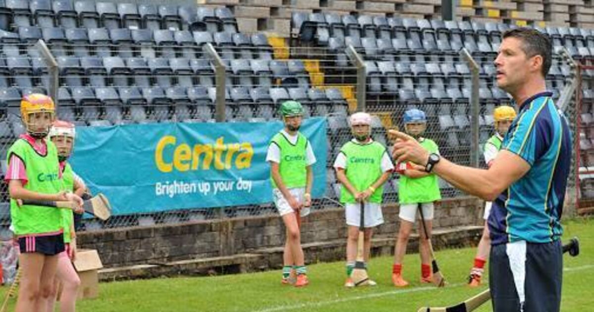 Coach Donach O'Donnell mentoring children at a Centra event.