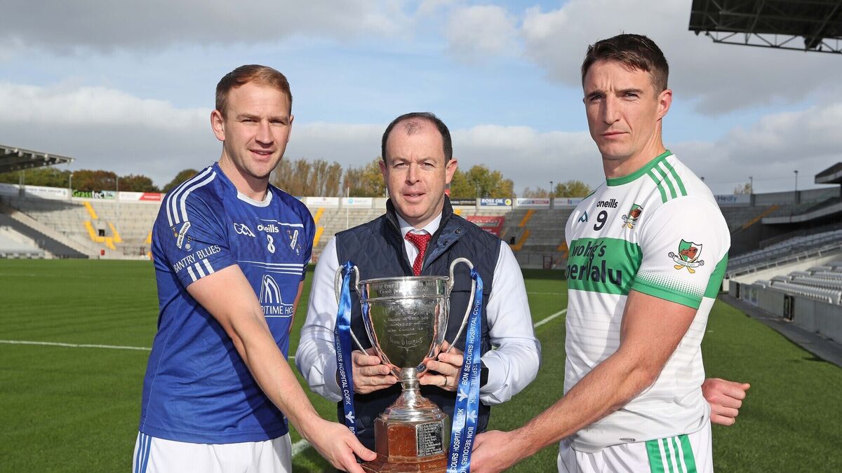 Bantry Blues' David Daly (left) with Cork County Board chairperson Marc Sheehan and Aidan Walsh of Kanturk ahead of Sunday's Bons Secours Hospital Cork Premier IFC final at Páirc Uí Chaoimh. Picture: Jim Coughlan