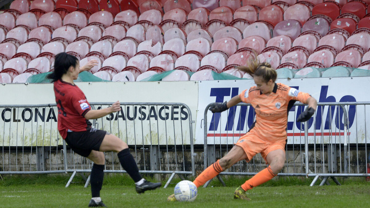 The Bohs shot-stopper raced from her line to tackle Laura Shine as she tempted to go around her before quickly rising to her feet and producing another excellent block to stop Aoibhin Donnelly from firing into the empty net albeit from at least 35 yards out.