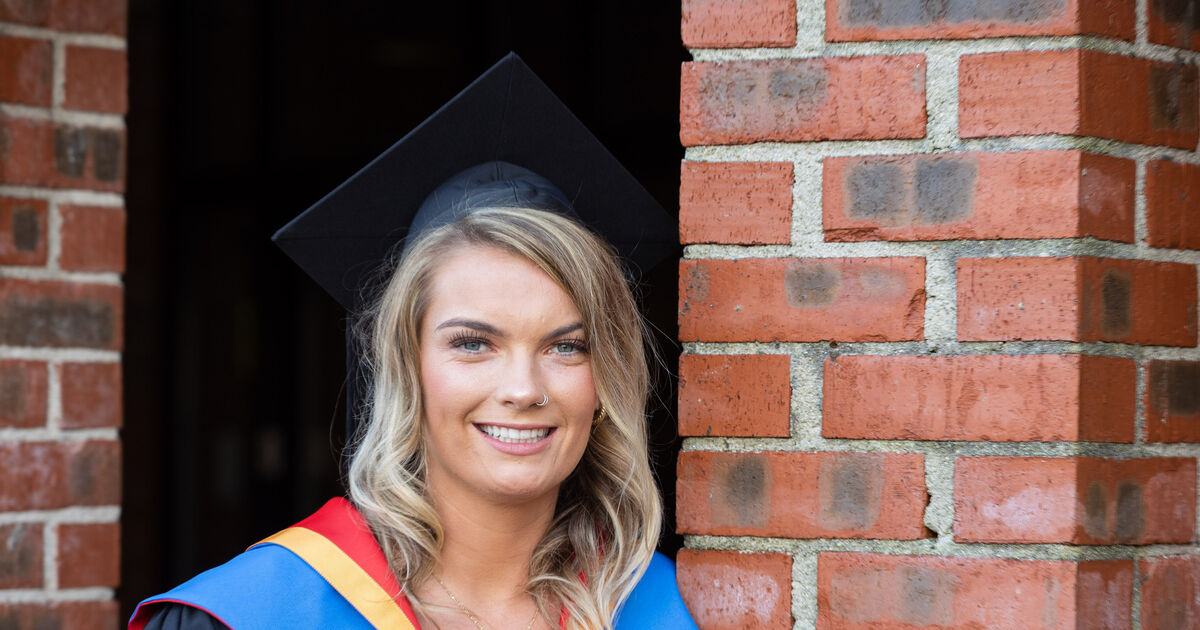 Marketing Graduate Saoirse Noonan, Republic of Ireland women's national football team and Durham FC at the MTU Bishopstown campus graduation ceremony.