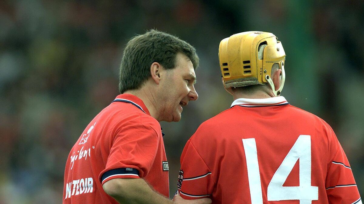 LEESIDE LEGENDS: Tom Cashman talks to Joe Deane in the 2001 Munster championship. Picture: INPHO/Patrick Bolger