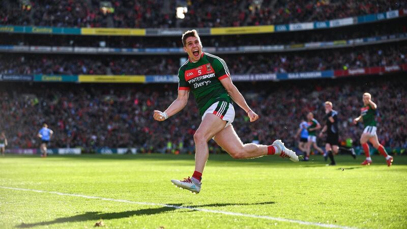 Lee Keegan of Mayo celebrates after scoring his side's first goal in the 54th minute during the GAA Football All-Ireland Senior Championship Final match between Dublin and Mayo at Croke Park in Dublin. Photo by Sam Barnes/Sportsfile