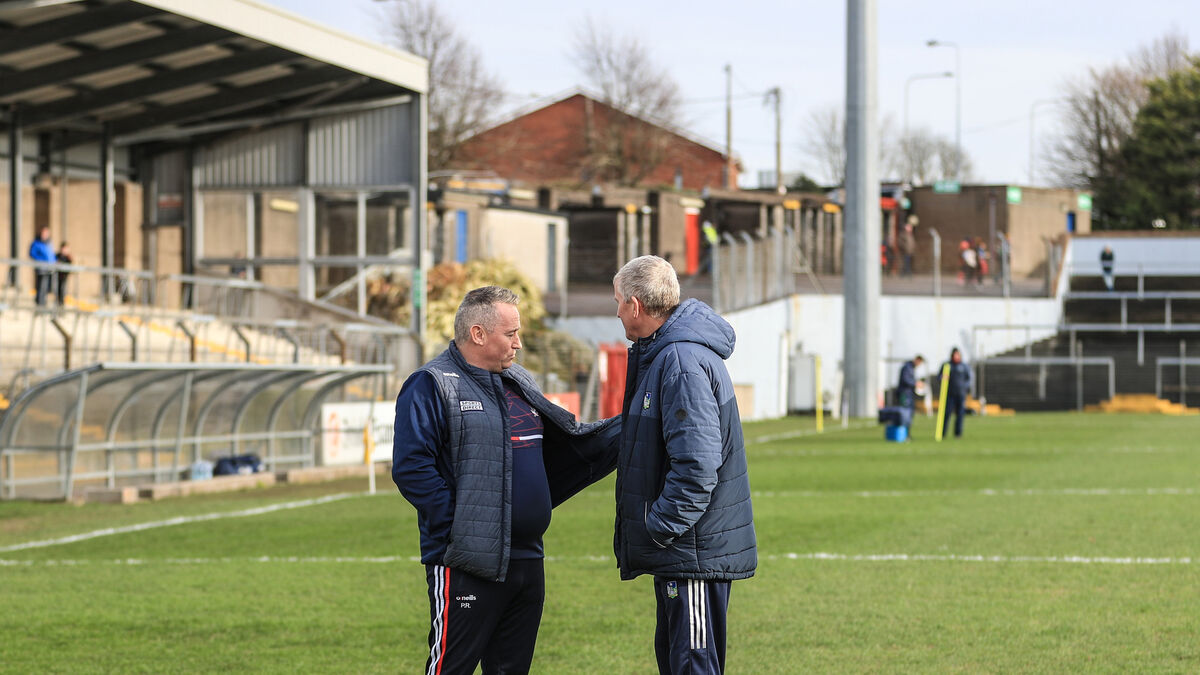 Limerick's John Kiely with new Cork manager Pat Ryan at Páirc Uí Rinn recently. Picture: INPHO/Evan Treacy