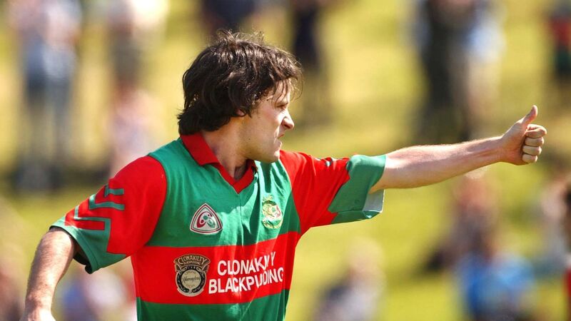 Clonakilty's Padraigh Griffin salutes his teammates after scoring the vital winning goal against Naomh Abán in the 2004 Cork SFC at Dunmanway. Picture: Eddie O'Hare