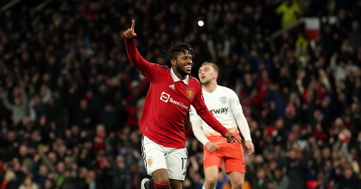 Manchester United's Fred celebrates scoring their side's third goal of the game during the Emirates FA Cup fifth round match against West Ham at Old Trafford, on Wednesday. Picture: Martin Rickett/PA Wire