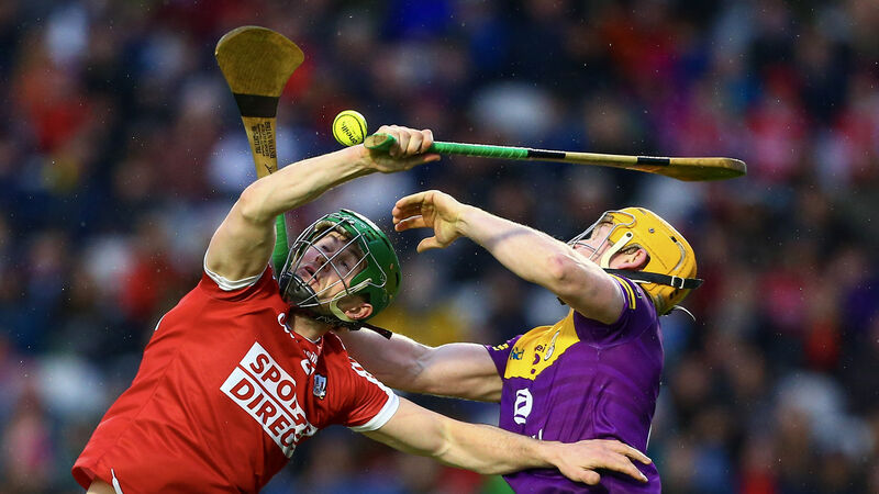 Cork’s Seamus Harnedy and Wexford’s Simon Donohoe. The Rebel veteran is a vital outlet for long deliveries. Picture: INPHO/Ken Sutton