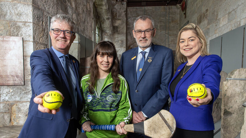 President John O'Halloran, Prof. Louise Crowley and UCC GAA Club welcomed the President of Cumann Luthchleas Geal Larry McCarthy to UCC to officially launch UCC GAA Club becoming a GAA Healthy Club, joined by student Claire O'Shea. Picture: Michael Mac Sweeney/Provision