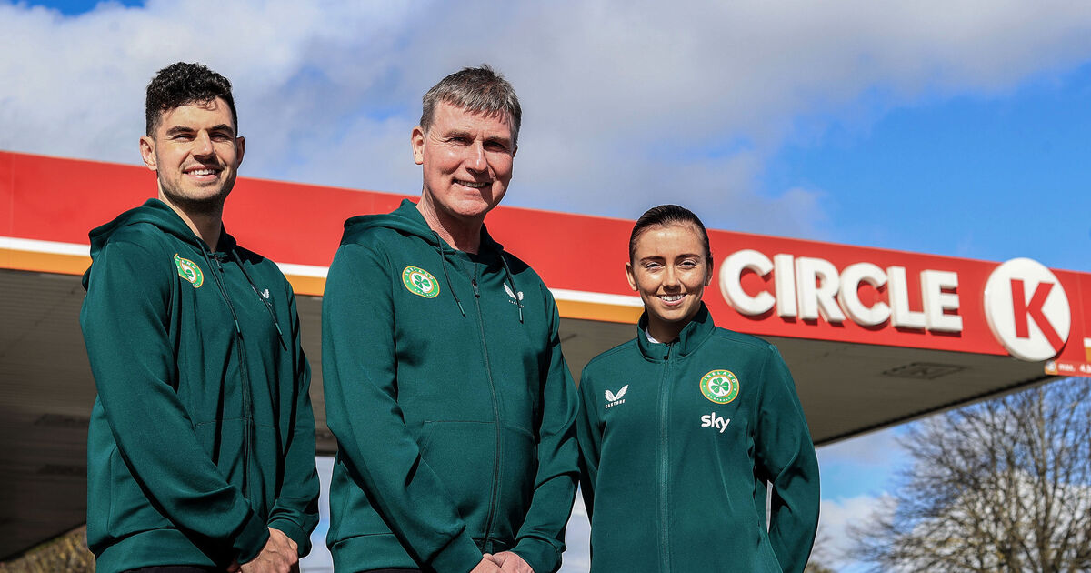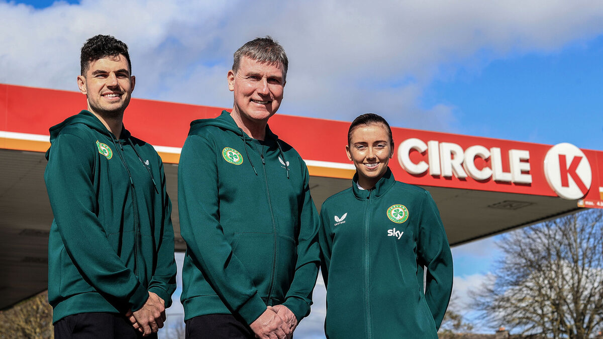 Stephen Kenny, John Egan and Abbie Larkin at the launch of Circle K’s new partnership with the FAI. Picture: INPHO/Dan Sheridan