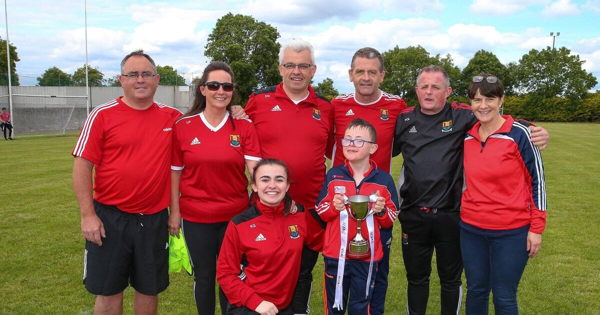 The victorious Cork U14 All-Ireland winning management team including Peter O'Leary second from the right) following the Rebels' victory over Galway in the decider at St Rynagh's GAA grounds in Offaly. Picture: Tom Russell, Anois Photgraphy.
