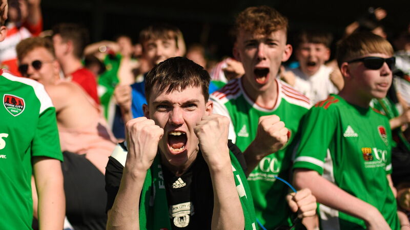 Cork City supporters celebrate after Daniel Krezic scored the winner against Bohs. Picture: Eóin Noonan/Sportsfile