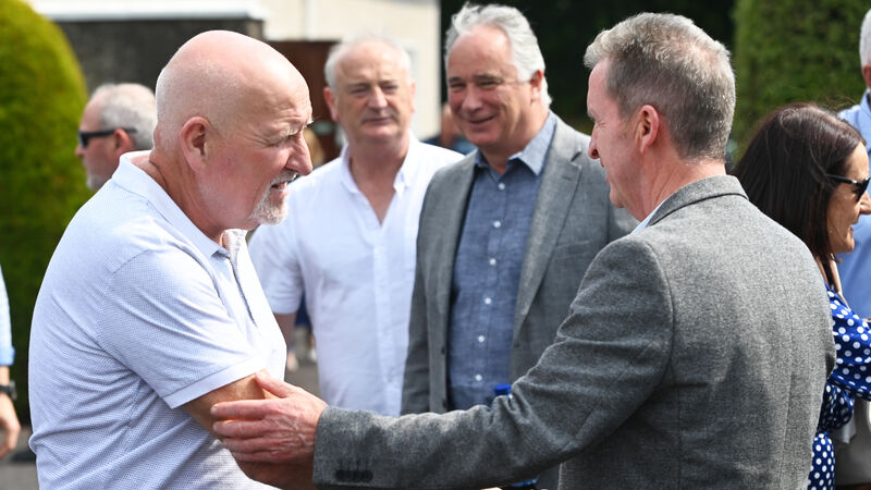 Dave Barry and Tony O'Sullivan, who both won All-Irelands with Teddy McCarthy, at his removal. Picture: Eddie O'Hare