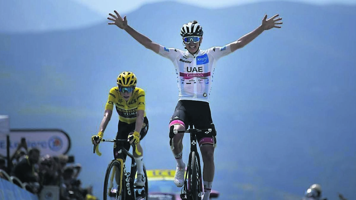 He was able to pull ahead while pedalling his light frame up the mountains and continue to build a lead coasting down the other side.