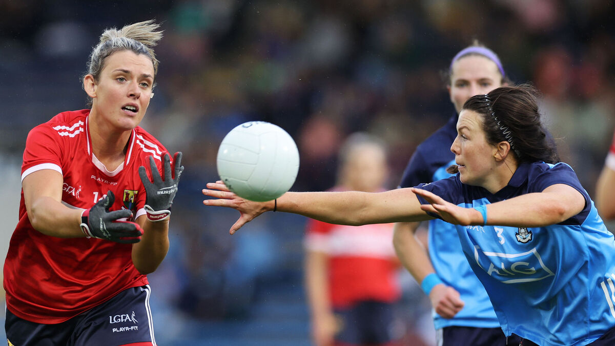 Dublin's Leah Caffrey and Doireann O'Sullivan of Cork in the All-Ireland. Picture: INPHO/Lorraine O’Sullivan
