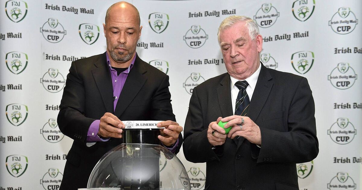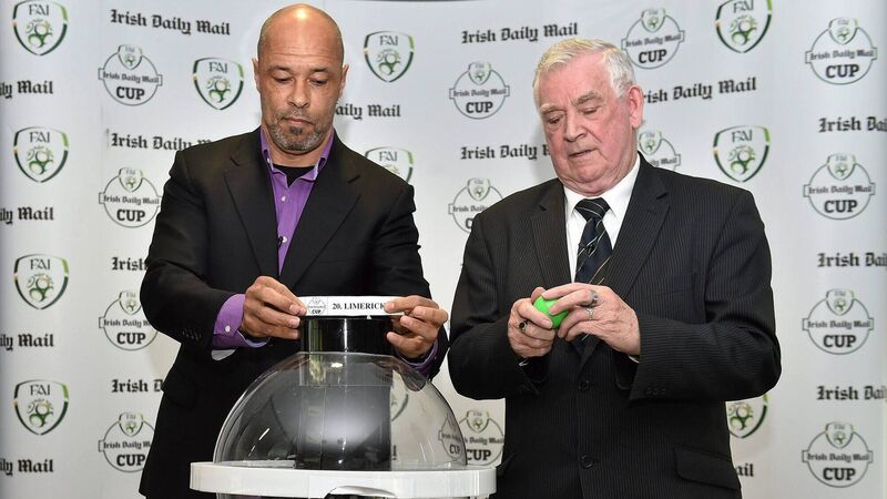 Republic of Ireland legend Paul McGrath, alongside Tony Fitzgerald, then President of the FAI, at the 2015 FAI Cup draw. Picture: Cody Glenn/SPORTSFILE