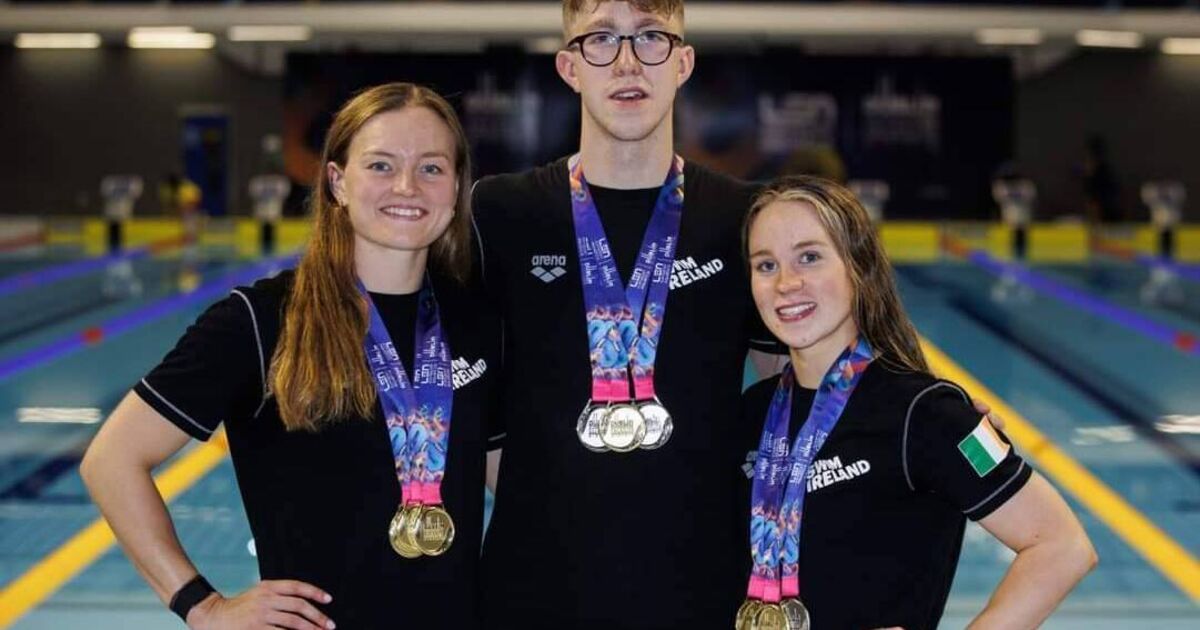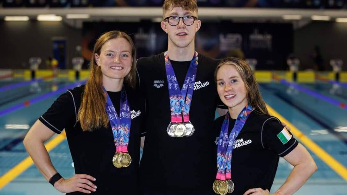 Irish stars Mona McSharry, Daniel Wiffen and Ellen Walshe at the LEN European U23 Championships in Dublin. Photo: Swim Ireland