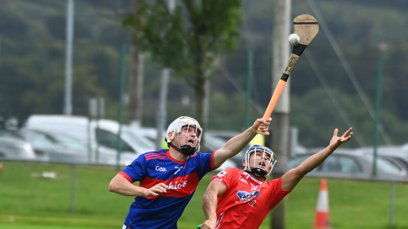 Charleville's Rian O'Regan and Erin's Own's Oran O'Connell tussle for the sliotar in Mallow. Picture: Eddie O'Hare