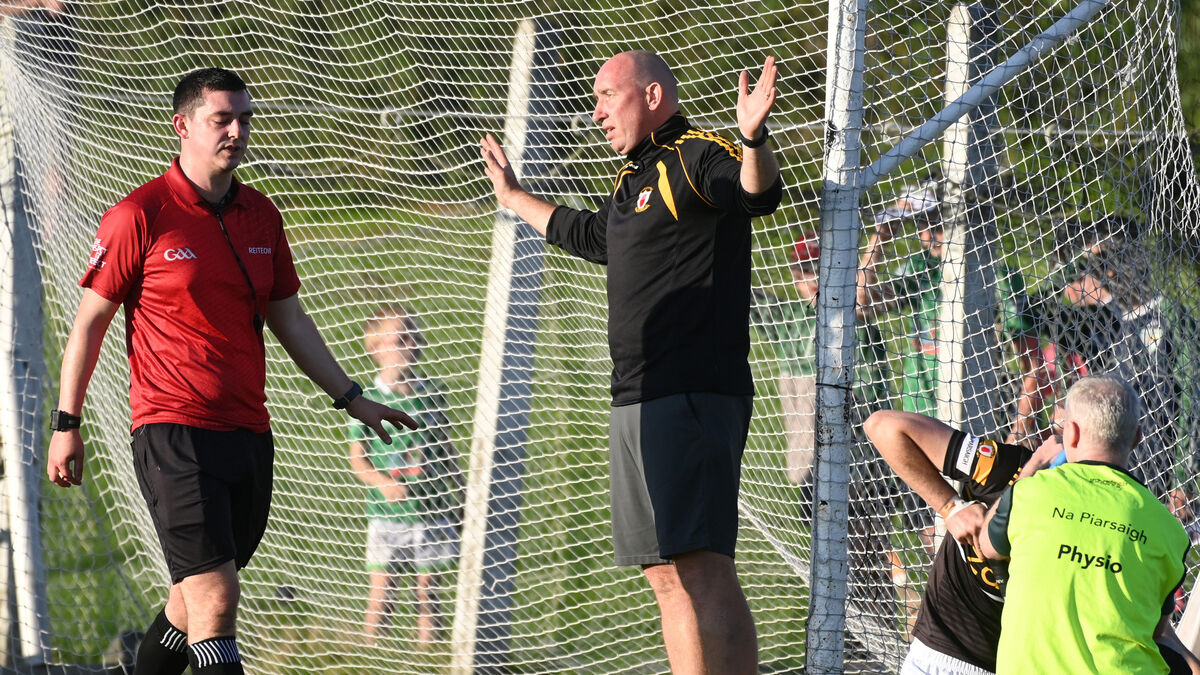 Na Piarsaigh's selector John Gardiner says 'it's wide' to referee Ciaran O'Regan against Killeagh. Picture: Eddie O'Hare