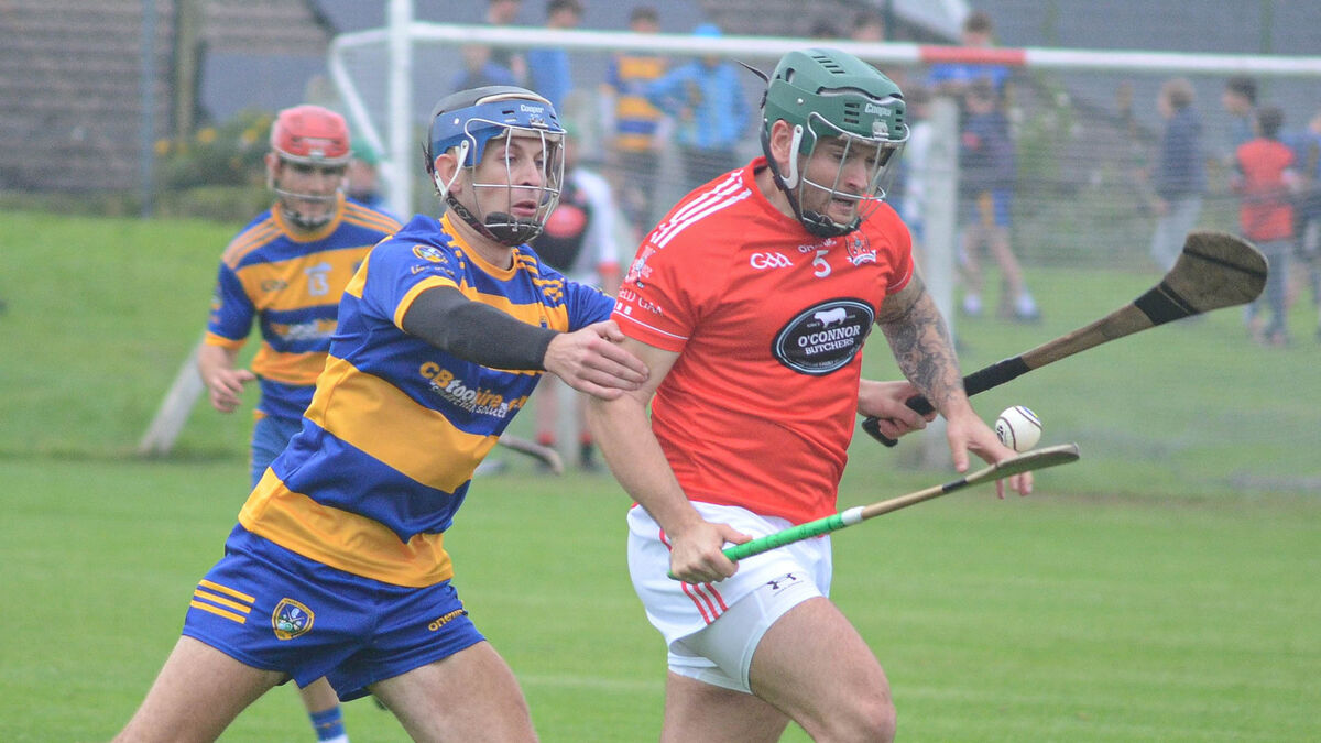 Mayfield's Dilan O'Donovan manages to pull away from the challenge of Lisgoold's Mark Hegarty in the Co-Op Superstores IAHC match in Cobh. Picture: Howard Crowdy