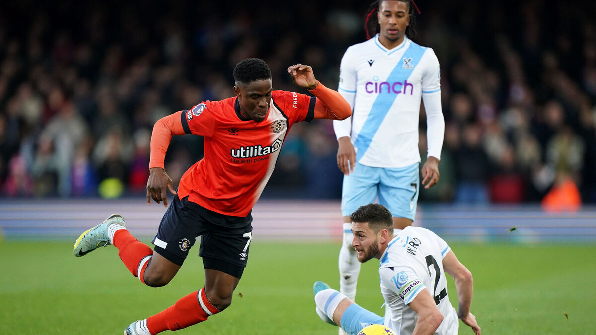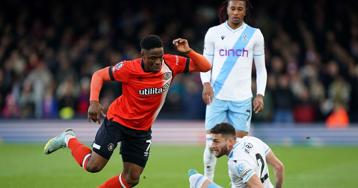 Luton Town's Chiedozie Ogbene gets past Crystal Palace's Joel Ward during the Premier League match at Kenilworth Road, Luton.