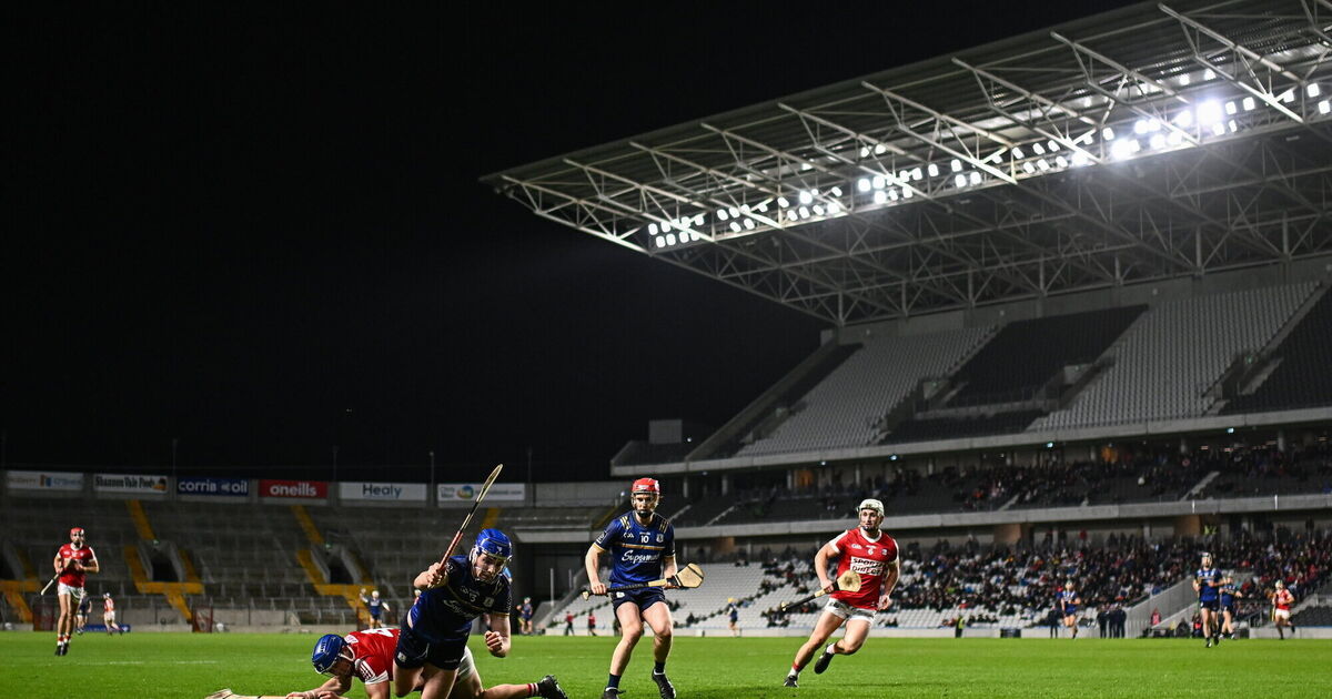 That made it 2-11 to 0-11 and, after O’Shea’s seventh Galway point, Brian Hayes almost added a third goal, his shot from a tight angle hitting the post and bouncing wide. Hayes did score the last point of the half, sending Cork in six ahead with all of their output having come from open play.