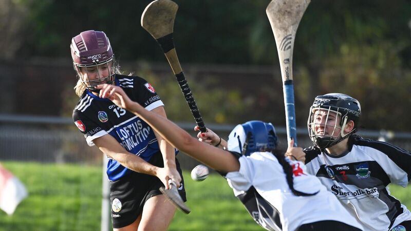 Sarsfields' Clare Mullins shoots past Newcastlewest's Kate Ambrose and Yvonne Lee during the AIB Munster senior club championship semi-final at Castle Road. Clare and 14 other camogie players will pick up their Reardens All-Star awards on Friday, December 29th