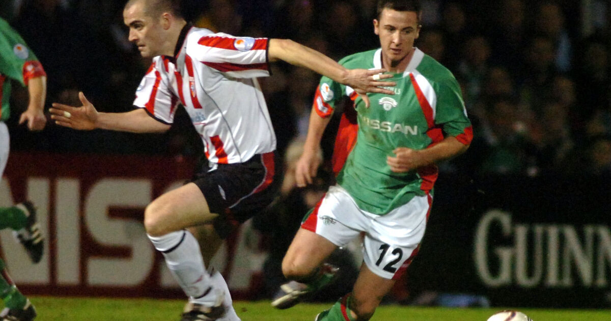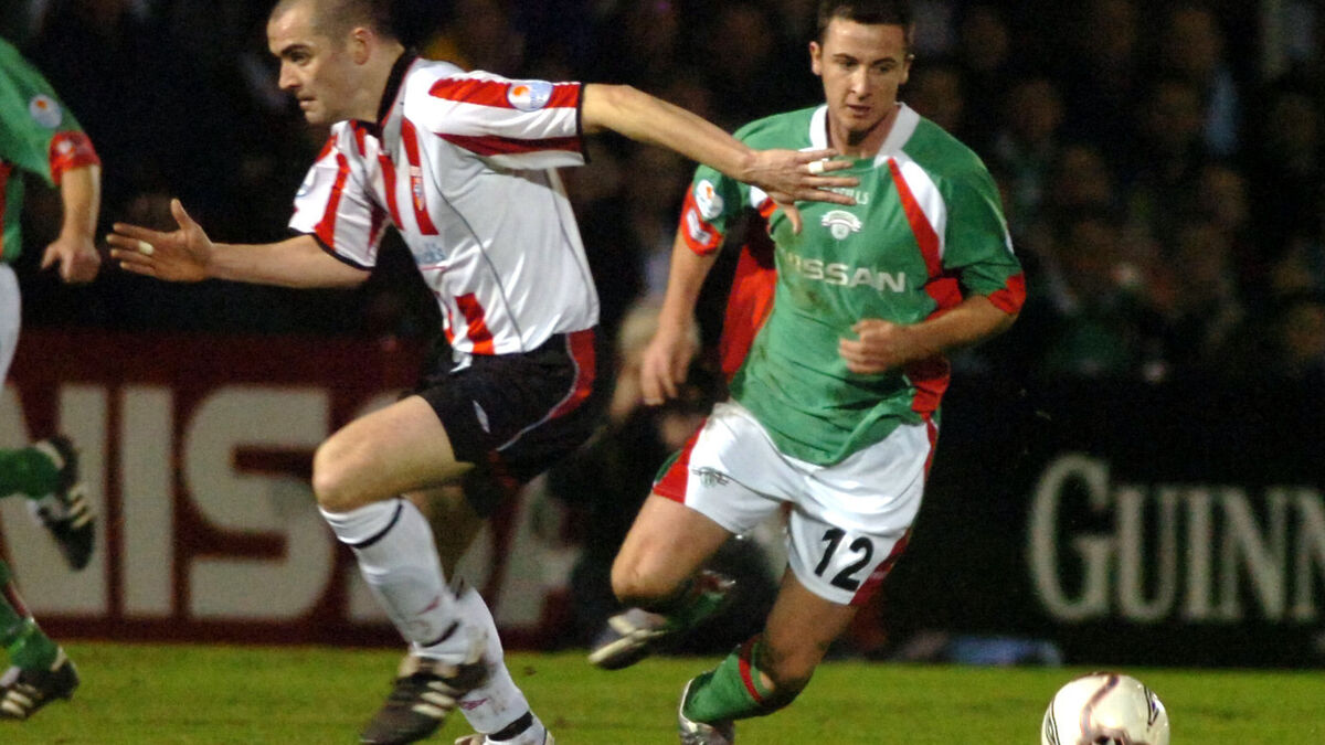 Roy O'Donovan turns Derry City's Sean Hargan during the league win at Turners Cross in 2005. Picture: Eddie O'Hare