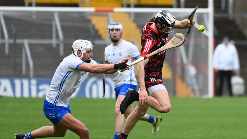 Cork's Ger Millerick wins possession against Neil Montgomery of Waterford during the Allianz HL Division 1 Group A game at SuperValu Páirc Uí Chaoimh. Picture: Eddie O'Hare
